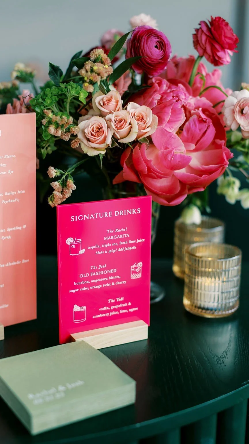 Ali’s floral design board tied beachy elements of seashells and sand dollars into the arrangements. Seeing this inspired my vision for a laser cut and etched sand dollar card. Using recycled paper for some added texture, I illustrated the sand dollar design to be laser-engraved and cut out of the paper. We tied these cards around the suite for details, as well as to the calligraphy name cards. Lilac silk ribbon and coastal blue calligraphy tied in the color palette from the suite.