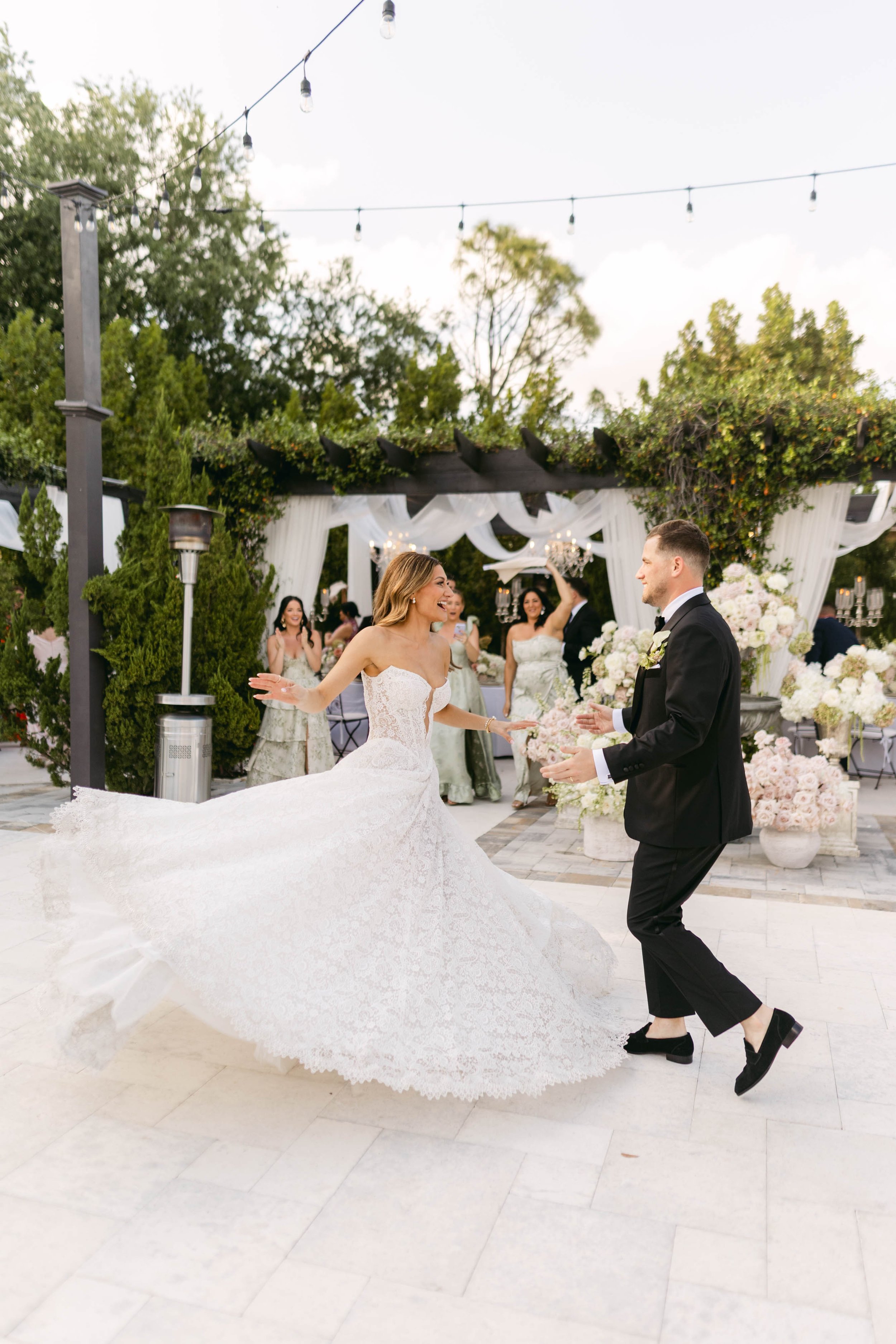 Planning & Design: The Eventeur | Photography: 515 Photo Co | Videography: Maksud Sharipov | Venue: La Casa Toscana | Florist: Nandina Grove | Stationery: Of Light & Letters | Music: Emma the Harpist, Cameo Band, and Tropics Entertainment | Catering: Naples Wedding Catering by Friscos | Cake & Gelato Cart: Sospiri | Hair & Makeup: Unbreakable Beauty | Rentals: Contempo Linens, Trinity Special Event Rentals, Atlas Event Rental, and Taylor Rental Naples | Stage: CocoLuna Events | Transportation: Naples Transportation | Officiant: Weddings by Danny | AV: SWFL Entertainment | As seen in Style Me Pretty